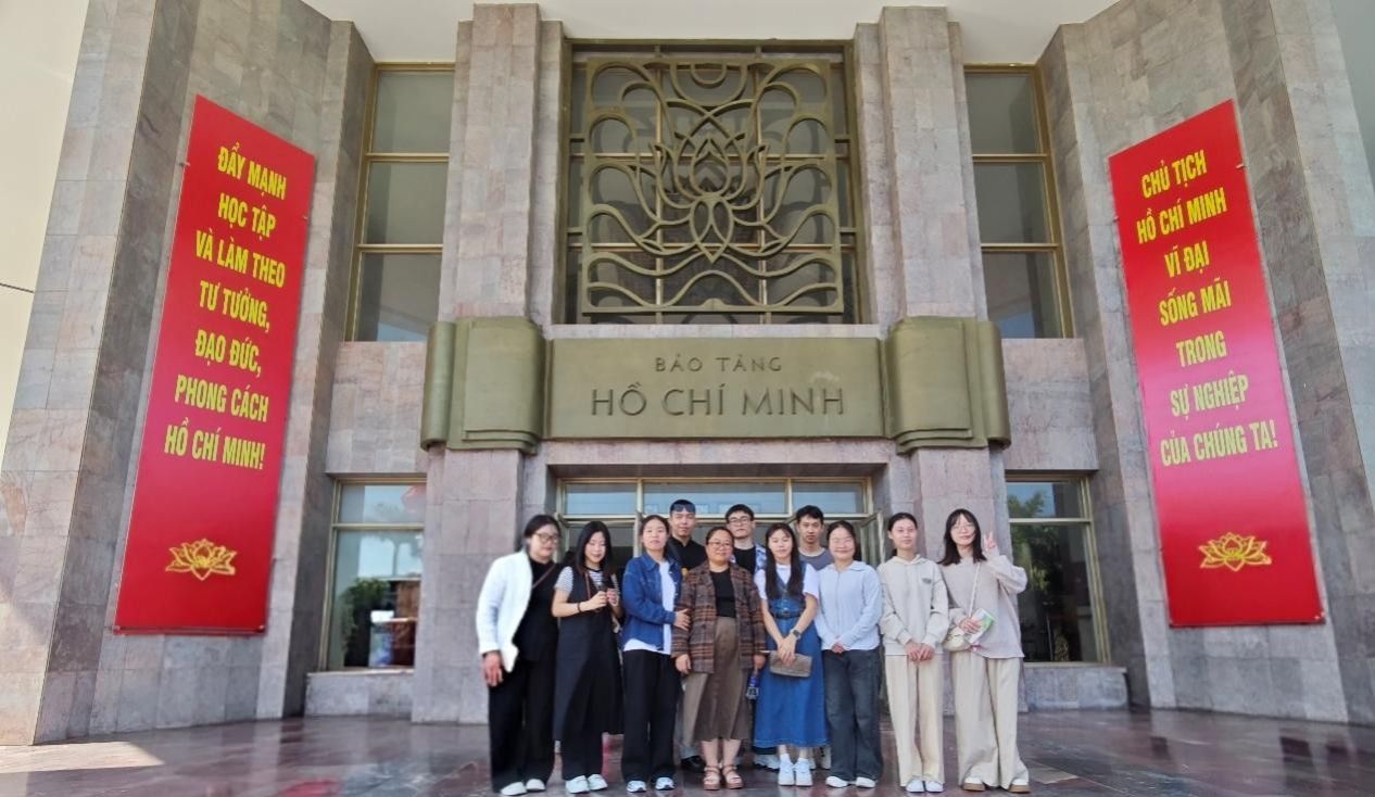 赴越访学研修团在河内国家大学所属人文与社会科学大学陈幸源(cô nguyên)老师的带领下,以探究马克思列宁主义如何实现越南本土化为研究课题,前往胡志明博物馆开展社会实践活动。