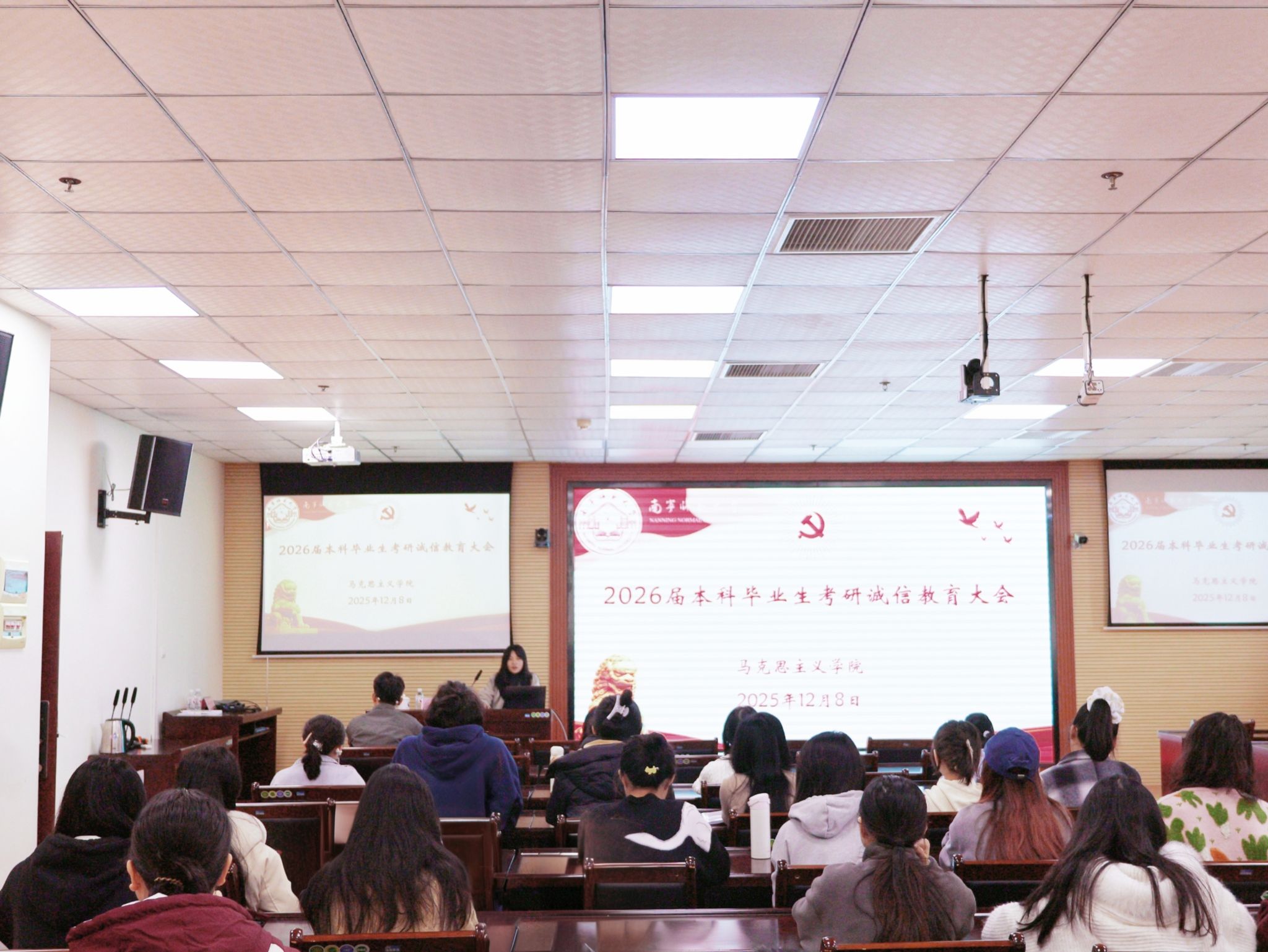 本次考研诚信教育大会暖意十足,既细化了考研全流程注意事项,又筑牢了同学们的诚信考试思想防线,为大家规范应考、安心冲刺提供了清晰指引,更凝聚起奋进向上的备考力量,为学院营造风清气正的考试氛围与求真务实的育人环境奠定了坚实基础。