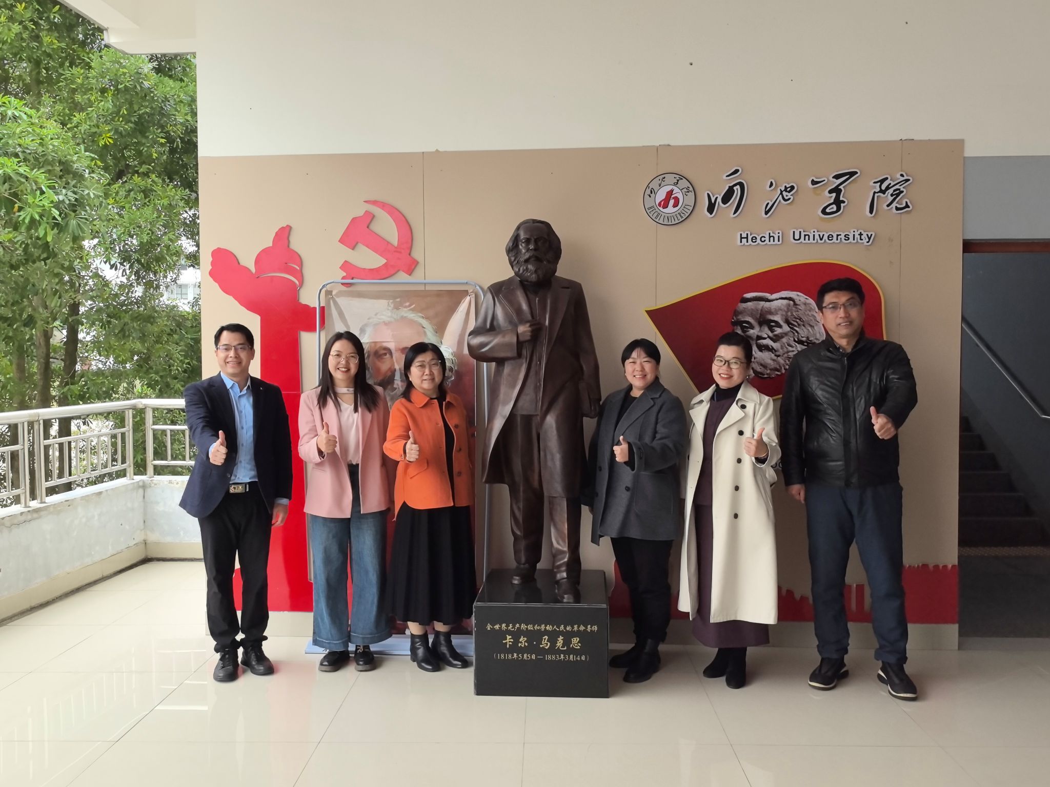 党委书记李玲率队赴河池学院公共管理学院开展党建共建交流活动。学院副院长谢丽丽、思政课教师第一党支部党员代表李瑞君、思政课教师第二党支部党员代表刘家瑶一同参加。河池学院公共管理学院党委副书记、副院长(主持行政工作)钟卓良,副院长孙明明,BB体育