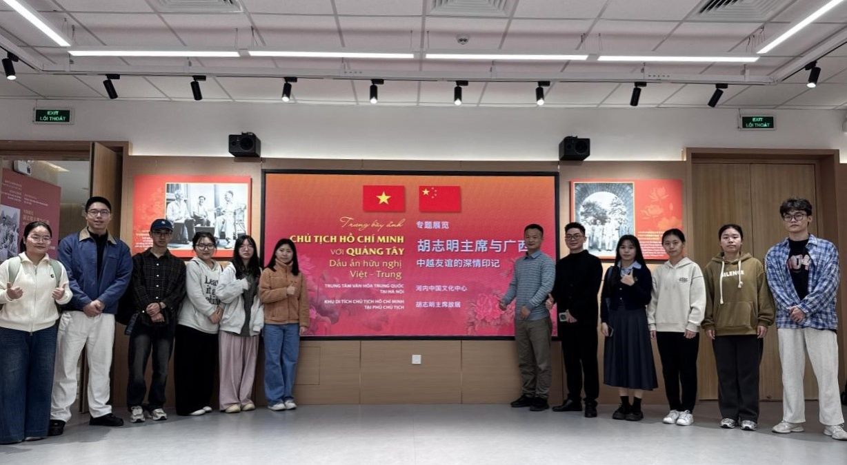 赴越访学研修团前往越南河内中国文化中心,开展“胡志明主席与广西:越中友谊的深情印记”专题实践教学。